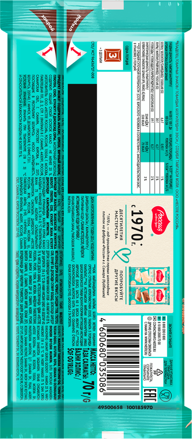 Шоколад молочный РОССИЯ ЩЕДРАЯ ДУША пористый, 70г