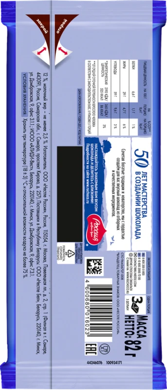 Шоколад РОССИЯ ЩЕДРАЯ ДУША – это нежный вкус шоколада, с добавлением настоящего молока, отборного фундука и изюма. Признанный шедевр, созданный из лучших ингредиентов!