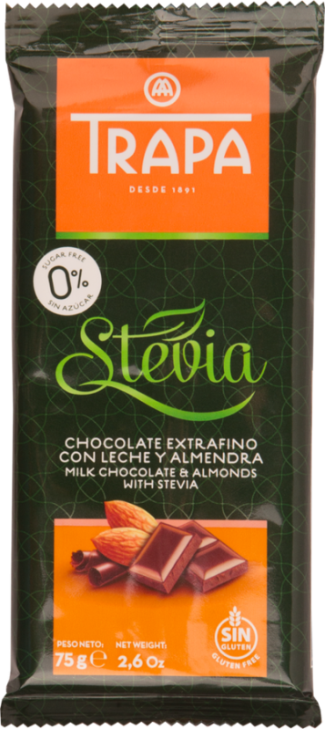 Шоколад молочный TRAPA с миндалем с подсластителями изготовлен с использованием естественных заменителей сахара – стевии и мальтита, которые практически не влияют на уровень сахара в крови. Молочный шоколад с миндалем без сахара и глютена создан для настоящего удовольствия. Жареный миндаль наполняет шоколад полнотой вкуса, что делает его прекрасным сытным десертом для перекуса. Нежный шоколад тает во рту, оставляя сладкое молочно-шоколадное послевкусие и отличное настроение. Рецептура для серии шоколада со стевией специально разработана для людей, которые не употребляют сахар.