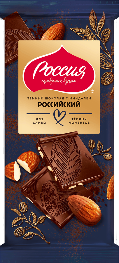 Шоколад темный РОССИЯ ЩЕДРАЯ ДУША с миндалем, 75г