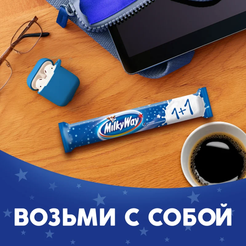 Шоколадный батончик MILKY WAY 1+1 – это нежная легкая молочная нуга, погруженная в тающий молочный шоколад. Идеальный вариант для быстрого перекуса в дороге, лучшее дополнение к утреннему кофе или чаю. Большой вкусный Милки Вей, тающий во рту, идеально дополнит чашечку горячего чая или кофе.