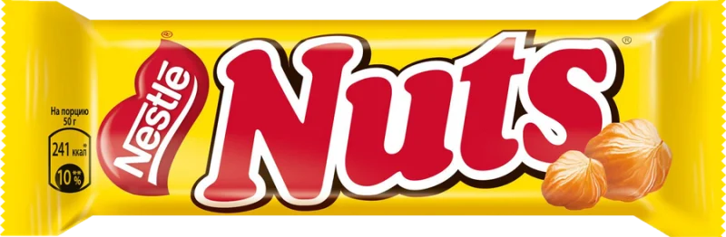 Батончик шоколадный NUTS сочетает в себе дробленный фундук и миндаль, покрытые карамелью, нугой и молочным шоколадом.