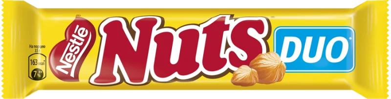 Батончик шоколадный NUTS Мегабайт duo – это батончик нугой, карамелью и цельным лесным орехом, стимулирующим работу головного мозга.