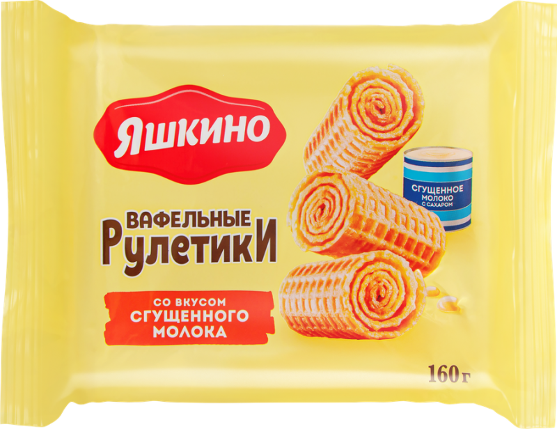 Вафельные рулетики ЯШКИНО со вкусом сгущенного молока, 160г