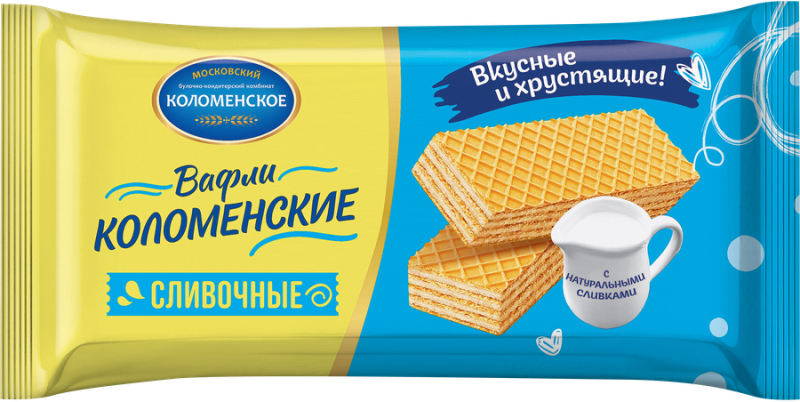 Вафли КОЛОМЕНСКОЕ, станут отличной альтернативой высококалорийным кексам, пирогам, конфетам с шоколадной глазурью. Их можно употреблять в перерывах между основными приемами пищи, на десерт или в качестве закуски. Вафли выпекаются из жидкого взбитого теста, отличаются умеренно сладким вкусом и нежным ароматом.