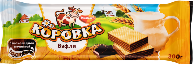 Вафли РОТ ФРОНТ Коровка с шоколадной начинкой, 300г