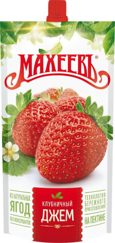 Джем МАХЕЕВЪ Клубничный приготовлен из сочных ягод клубники. Отличается насыщенным ягодным вкусом и летним ароматом. Густая консистенция позволяет использовать продукт в начинках: джем не растекается. Замечательно подходит для тостов, бутербродов и выпечки, для десертов, мороженого или просто к чаю.