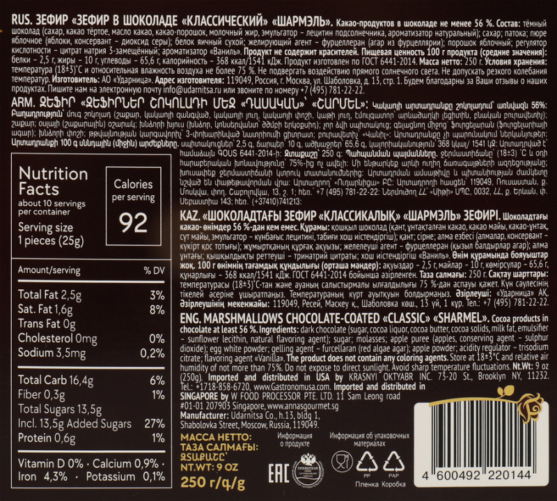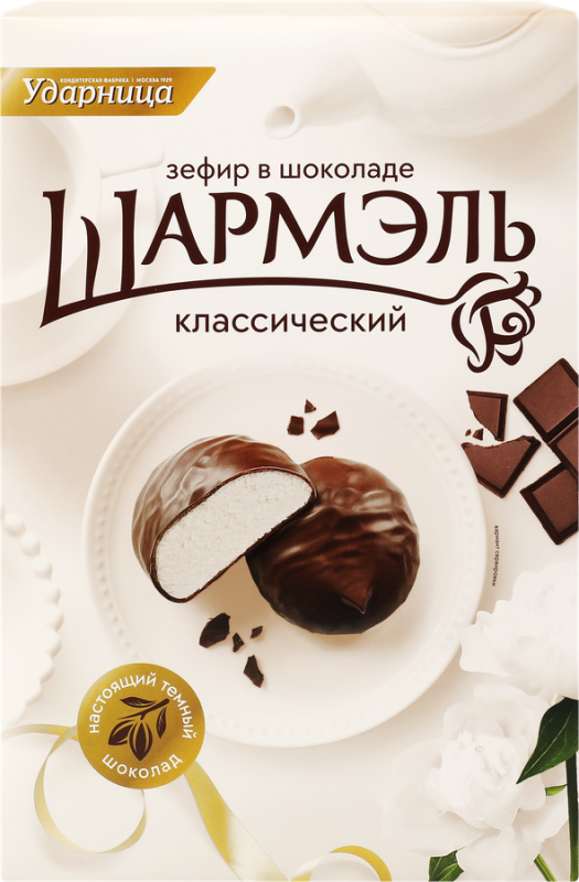 Зефир ШАРМЭЛЬ – это изысканное лакомство, покрытое настоящим темным шоколадом. Производится по традиционной рецептуре.