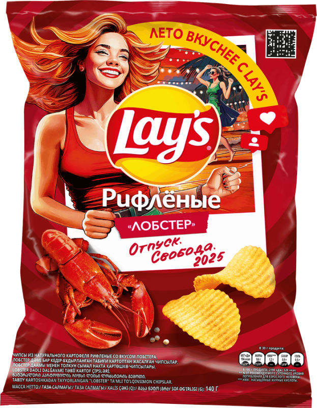 Чипсы картофельные LAY’S Рифленые Лобстер изготовлены из специально отобранного картофеля и соответствуют самым высоким стандартам качества. Хрустящие и легкие на вкус картофельные чипсы LAY’S были созданы, чтобы вызвать улыбку на лице каждого человека, поэтому ими так приятно делиться с лучшими друзьями. Чипсы LAY’S скрасят любой день. Восхитительное сочетание изысканного вкуса омара и нежно-рифленых, золотистых кусочков отборной картошки не оставит равнодушным даже искушенного гурмана.