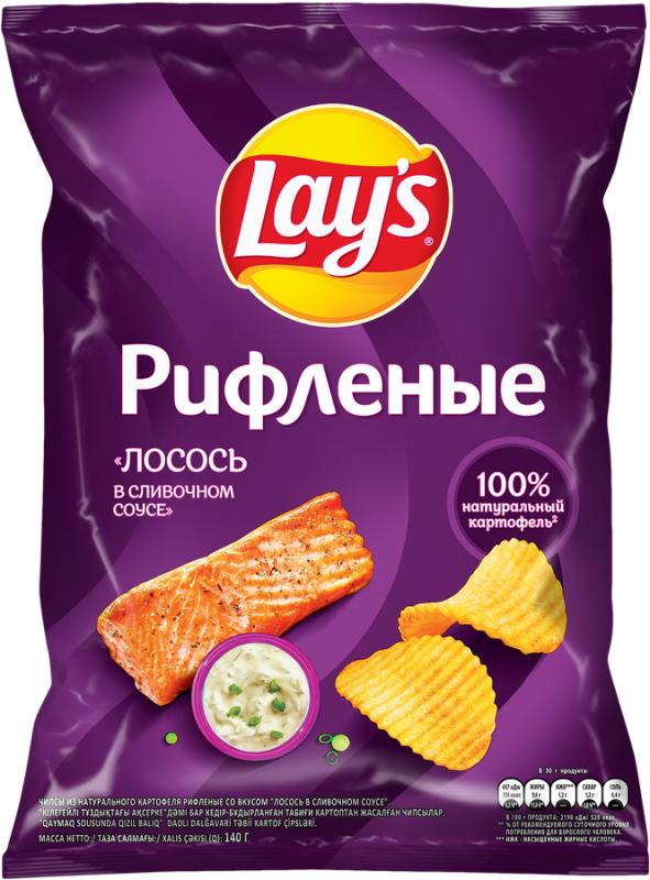 Чипсы картофельные LAY’S Рифленые Сливочный лосось изготовлены из специально отобранного картофеля и соответствуют самым высоким стандартам качества. Хрустящие и легкие на вкус картофельные чипсы LAY’S были созданы, чтобы вызвать улыбку на лице каждого человека, поэтому ими так приятно делиться с лучшими друзьями. Чипсы LAY’S скрасят любой день. Хрустящие чипсы Сливочный лосось приготовлены специально для любителей морских вкусов. Сочетание нежного вкуса лосося и чипсов из натурального картофеля дарят настоящее удовольствие.