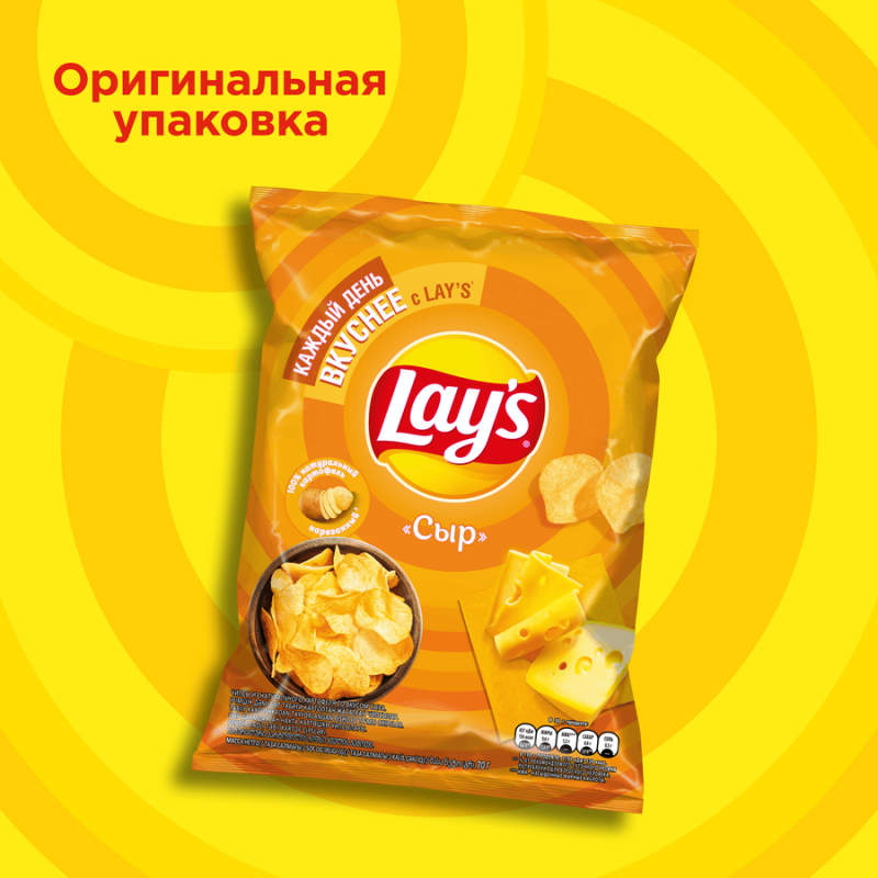 Чипсы картофельные LAY’S со вкусом сыра изготовлены из специально отобранного картофеля и соответствуют самым высоким стандартам качества. Они были созданы, чтобы вызвать улыбку на лице каждого человека, поэтому ими так приятно делиться с друзьями. Насыщенный аромат, аппетитный хруст и уже давно полюбившийся вкус – это LAY’S со вкусом сыра. Из 100% натурального картофеля.