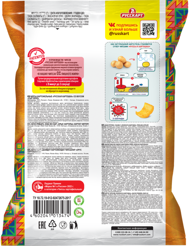 Чипсы картофельные РУССКАЯ КАРТОШКА со вкусом сыра начо помогут скрасить досуг, составят удачное сочетание с прохладительными напитками, подойдут для быстрого перекуса. Они изготовлены из отборного картофеля, отличаются хрустящей текстурой и выразительным пикантным вкусом.
