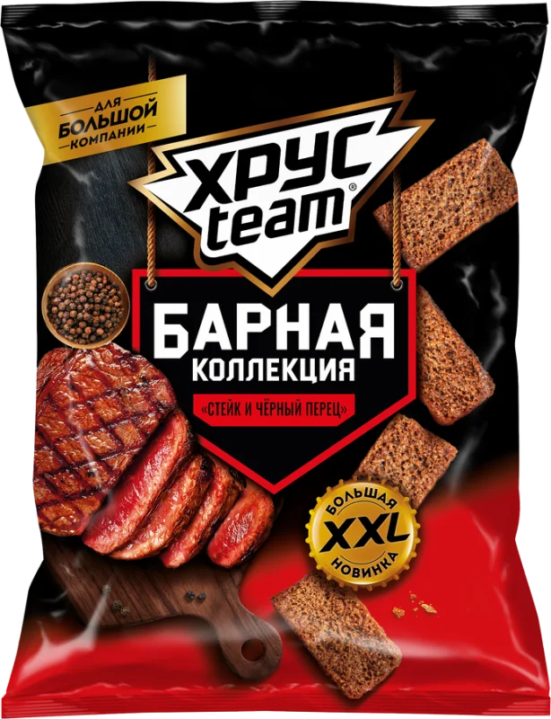 Сухарики ржано-пшеничные ХРУСTEAM Барная Коллекция, со вкусом стейк и черный перец, 140г