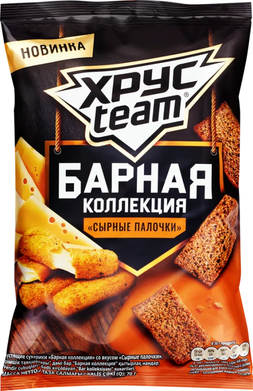 Сухарики ржано-пшеничные ХРУСTEAM Барная коллекция, сырные палочки, 70г