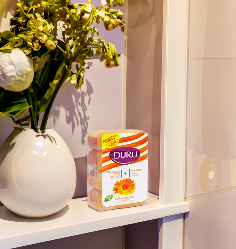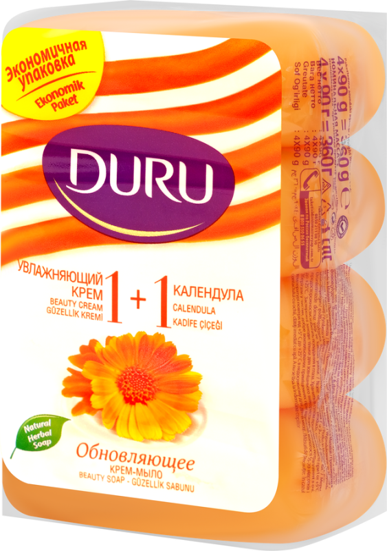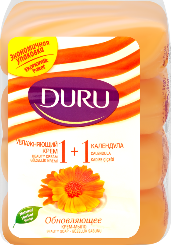 Крем-мыло DURU 1+1 Календула, 80г обладает антисептическими свойствами. Прекрасно пенится и подходит для ежедневного использования. После применения кожа остается мягкой и увлажненной без шелушения и стянутости.