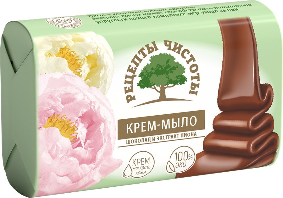 Крем-мыло туалетное РЕЦЕПТЫ ЧИСТОТЫ Шоколад и экстракт пиона, 100г