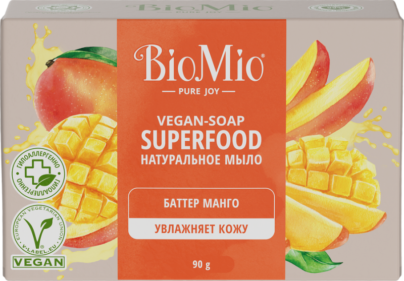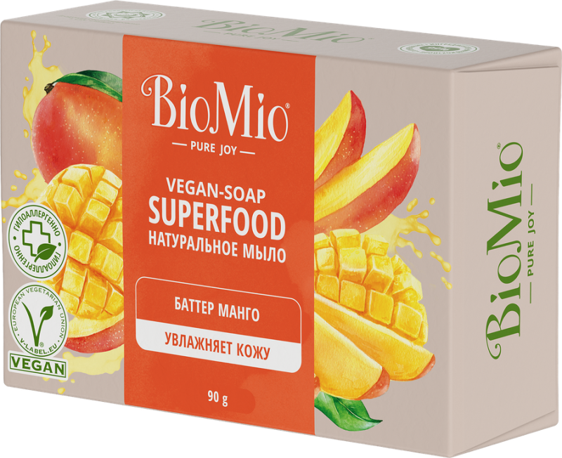 Мыло туалетное BIOMIO Superfood Манго натуральное, 90г