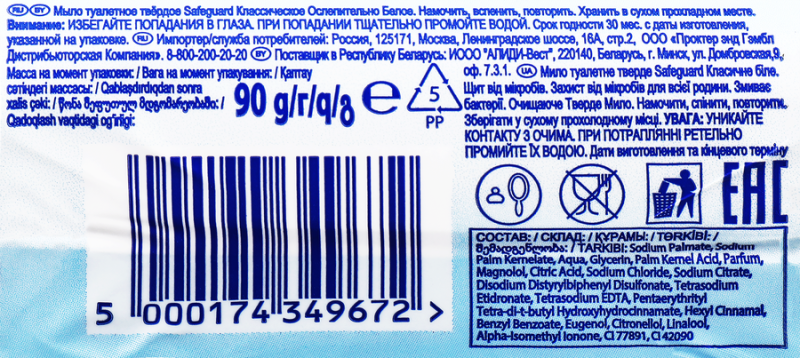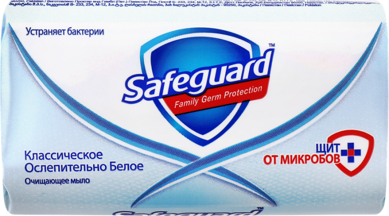 Туалетное мыло SAFEGUARD защищает от бактерий даже после смывания! Антибактериальное мыло SAFEGUARD «Классическое Ослепительно Белое» защищает от болезнетворных бактерий даже после смывания и подходит для ежедневного использования. Клинически доказано. Это мыло – просто находка! Отличная защита от микробов, не вызывает раздражения, подходит для всей семьи.