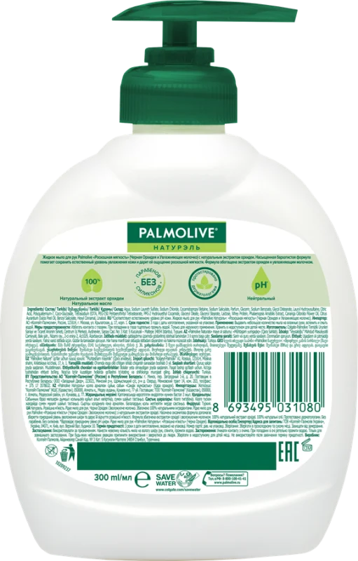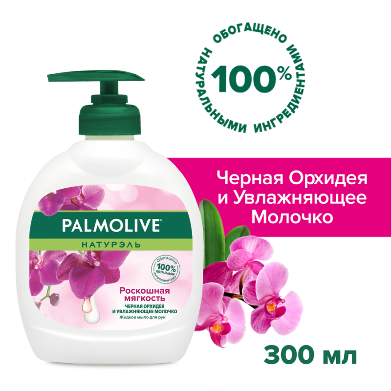 Жидкое мыло PALMOLIVE Натурэль Роскошная мягкость Черная орхидея и увлажняющее молочко, 300мл