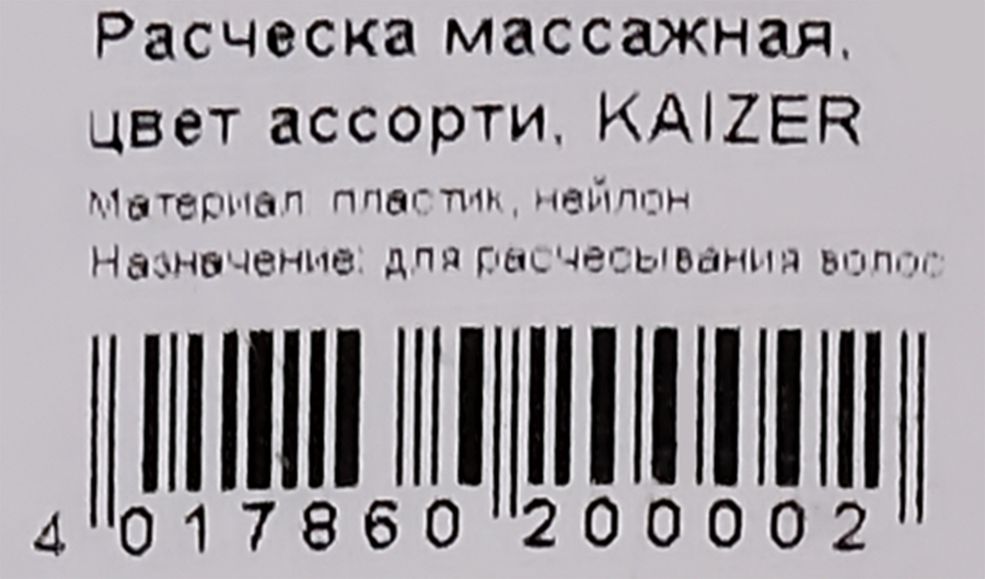 Расческа массажная KAIZER цвета в ассортименте, Арт. 20000