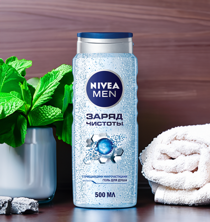 Гель для душа мужской NIVEA Заряд чистоты, 500мл