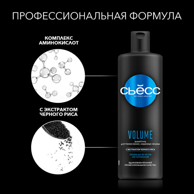 С момента основания СЬЕСС в Осаке в 1977 году миссия компании предоставлять средства профессионального качества, чтобы волосы всегда выглядели красивыми и ухоженными как после салона. Профессиональные формулы, вдохновленные Японией, соединяют в себе натуральные ингредиенты и передовые технологии в уходе за волосами. Шампунь для тонких и лишенных объема волос СЬĔСС Volume: 0% силиконов – не утяжеляет волосы. Объем до 48 часов.