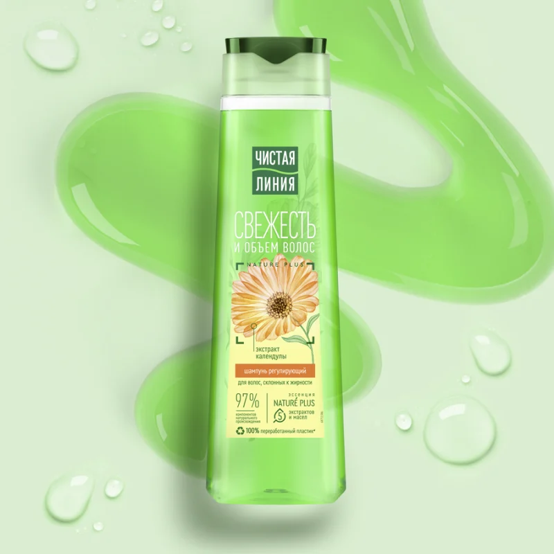 Шампунь для волос, склонных к жирности, ЧИСТАЯ ЛИНИЯ «Шалфей, календула, тысячелистник» на отваре целебных трав контролирует активность сальных желез и надолго сохраняет ощущение свежести и чистоты. Активные натуральные компоненты снижают излишнюю жирность кожи головы и волос, не пересушивая корни. В календуле содержатся каротиноиды, флавоноиды (биологически активные вещества, обладающие антиоксидантными свойствами), кумарины и прочие полезные для кожи вещества. Благодаря им календула очищает, освежает, тонизирует. Шампуни и бальзамы с добавлением шалфея питают кожу головы и волосы, а также нормализуют их состояние. Регулярное применение косметических средств на основе тысячелистника помогает вернуть волосам природную мягкость и объем. Доказано: при использовании шампуня совместно с бальзамом эффективность возрастает в 3 раза!
