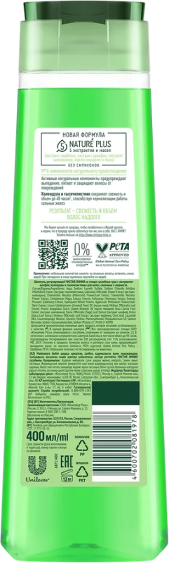 Aqua, Sodium Laureth Sulfate, Cocamide DEA, Sodium Chloride, PEG-7 Glyceryl Cocoate, Achillea Millefolium Extract (Экстракттысячелистника), Calendula OffiCInalis Flower Extract (Экстракт календулы), Chamomilla Recutita (Matricaria) Flower Extract,Chamomilla Recutita (Matricaria) Flower/Leaf Extract, Chelidonium Majus Extract, Hydrolyzed Wheat Protein, Hypericum PerforatumFlower/Leaf/Stem Extract, Laurdimonium Hydroxypropyl Hydrolyzed Wheat Protein, Melissa OffiCInalis Leaf Extract, Salvia OffiCInalis(Sage) Leaf Extract (Экстракт шалфея), Urtica Dioica (Nettle) Leaf Powder, CItric Acid, Cocamidopropyl Betaine, Disodium EDTA,Glycerin, Methylchloroisothiazolinone, Methylisothiazolinone, Parfum, Phenoxyethanol, Polyquaternium-10, Sodium Benzoate, CI 14720,CI 19140, CI 42090