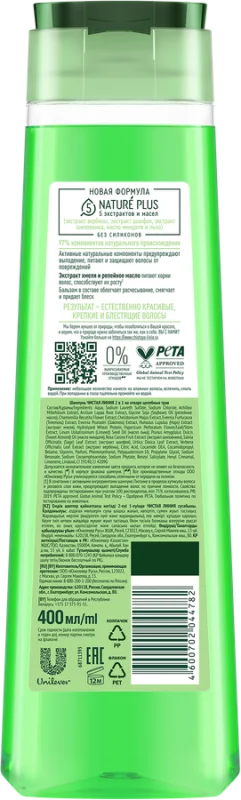 Шампунь для всех типов волос ЧИСТАЯ ЛИНИЯ 2в1 Хмель, на отваре целебных трав, 400мл