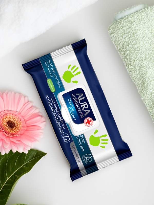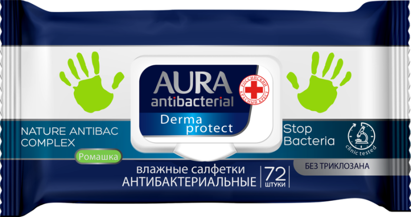 Салфетки влажные AURA Antibacterial Derma Protect антибактериальные, 72шт