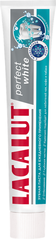 Зубная паста Lacalut perfect white c мицеллярной водой тщательно очищает зубную эмаль от окрашенного налета, полирует ее поверхность и сохраняет чистоту в полости рта на долгое время. Осветляющий комплекс пирофосфатов и мягких абразивов осветляет зубную эмаль благодаря удалению зубного налета с поверхности эмали. Гидроксиапатит восстанавливает внешние слои эмали и полирует ее. Фторид укрепляет эмаль и защищает от кариеса, лактат алюминия заботится о деснах. Подойдет для курильщиков и любителей чая и кофе.