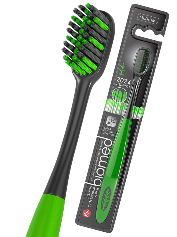Зубная щетка BIOMED Комплексная с древесным углем, средней жесткости