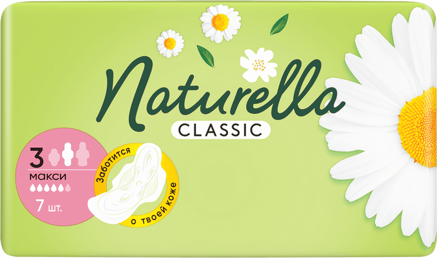 Мягкие гигиенические прокладки NATURELLA Classic Maxi «Ромашка» с крылышками, помогающими надежно фиксировать прокладку, более длинные (по сравнению с NATURELLA Classic Normal) и обеспечивают дополнительную защиту кожи в интимной зоне в дневное время при обильных выделениях. Это единственные женские прокладки, содержащие Dermacrem – уникальный сухой лосьон против раздражения кожи, действие которого доказано клинически. Обладают ароматом ромашки и имеют желобки в форме цветка с эксклюзивной впитывающей системой, а впитывающие волокна помогают распределять и удерживать жидкость внутри, обеспечивая сухость и комфорт. Прокладки NATURELLA обеспечивают дополнительную защиту, необходимую во время менструации, бережно заботясь о вашей коже. Менструация может быть сопряжена с некоторыми проблемами, и в это время средства защиты не должны быть еще одним источником дискомфорта. Для дополнительной защиты в ночное время воспользуйтесь NATURELLA Classic Night.