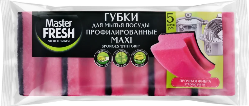 Губки для мытья посуды MASTER FRESH MAXI профилированные, 5шт