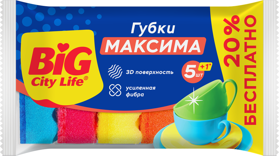 Губки для посуды BIG CITY LIFE Максима, с волнистой поверхностью, 5+1 шт, 6шт
