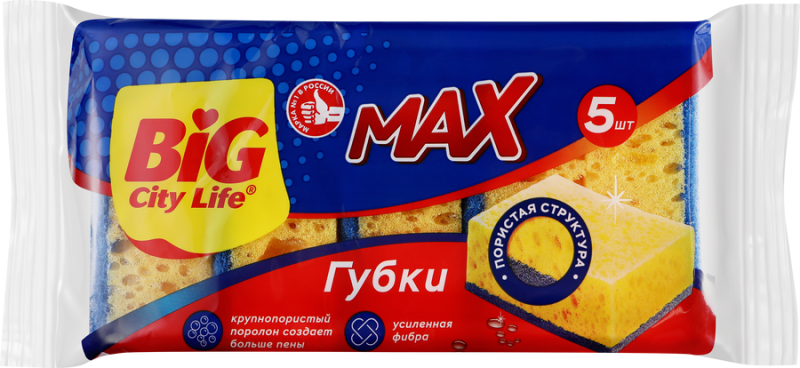 Губки для посуды BIG CITY LIFE Max, крупнопористые, 5шт