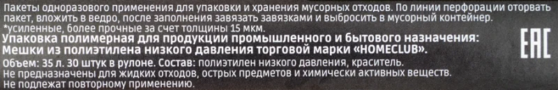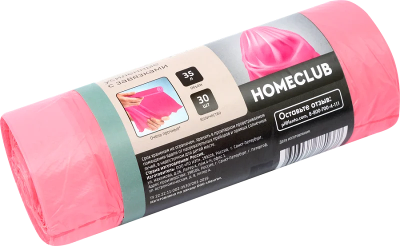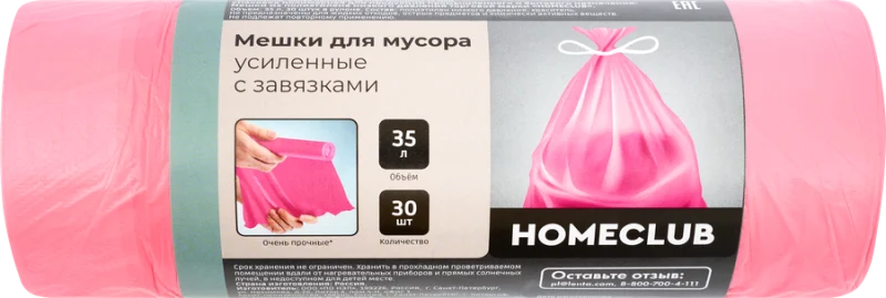 Пакеты для мусора HOMECLUB усиленные с завязками, 30шт
