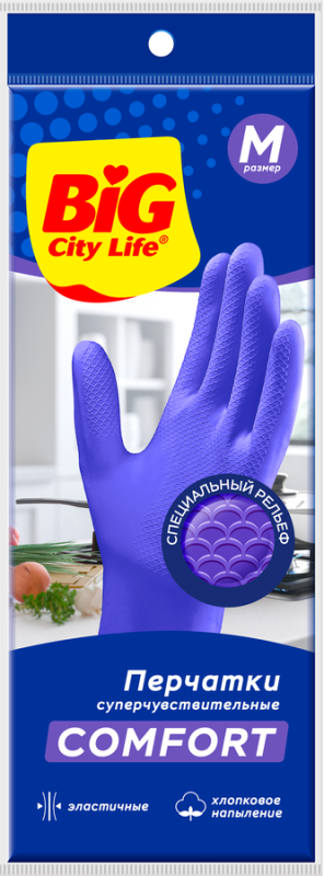 Суперчувствительные латексные перчатки от бренда BIG CITY LIFE – незаменимые помощники для хозяйки в процессе уборки и стирки. Перчатки изготовлены из натурального высококачественного латекса. Специально подобранная толщина перчаток позволяет хорошо чувствовать поверхности и мелкие предметы, при это надежно защищают руки. Хлопковое напыление внутри надежно защищает руки от раздражения. Внешняя рельефная сторона в области пальцев и ладошки обеспечивает уверенный захват и фиксацию скользких предметов. Перчатки легко одеваются и снимаются, не скатываются. Яркий привлекательный дизайн и фиолетовый цвет перчаток создают хорошее настроение и помогают достичь отличного результата. Размер M – универсальный, подходит как для женских и так и для средних мужских рук, размерная сетка есть на оборотной стороне упаковки. С перчатками BIG City Life максимальная защита и комфорт!