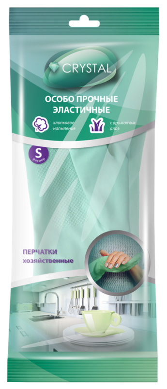 Перчатки хозяйственные CRYSTAL с экстрактом алоэ размеры S,M,L защищают кожу рук от загрязнений, воздействия влаги и моющих средств. Незаменимы при разделке мяса, рыбы, чистке овощей, стирке белья и уборке помещений. Перчатки выполнены из прочного и эластичного латекса, устойчивого к деформации. Внутреннее хлопковое напыление обеспечивает дополнительный комфорт при использовании.