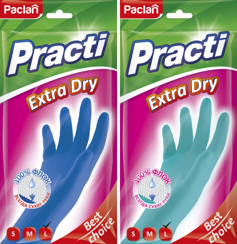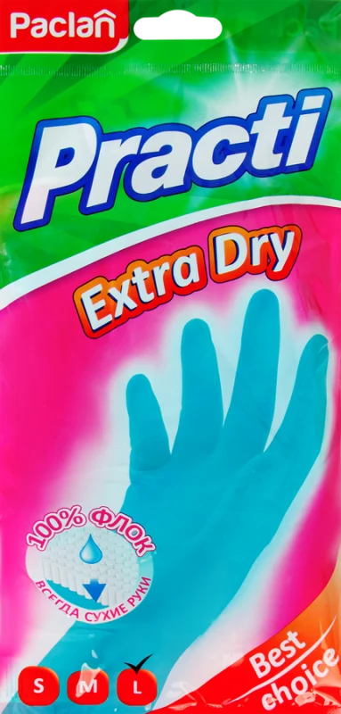 Перчатки хозяйственные PACLAN Extra Dry, размер L, синие, 1 пара, Арт. 407361