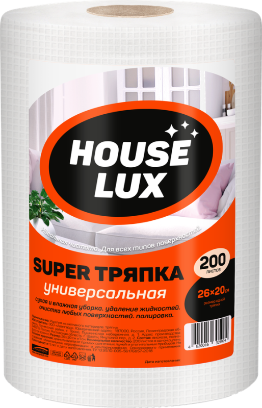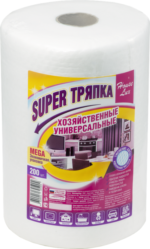 Тряпка HOUSE LUX №200 Super 25×23/26×20см, спанлейс предназначена для сухой и влажной уборки. Подходит для любых поверхностей: мебели, стекол, пола, а также для домашней и офисной техники. Материал обладает высокимивпитывающими свойствами, не оставляет разводов и ворсинок на поверхности. Подходит для многоразового использования.