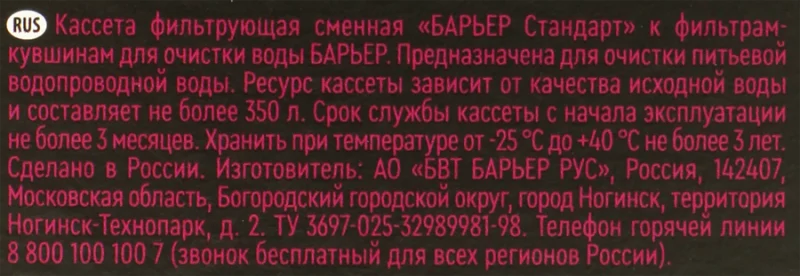 Кассета сменная БАРЬЕР Стандарт, удаление хлора