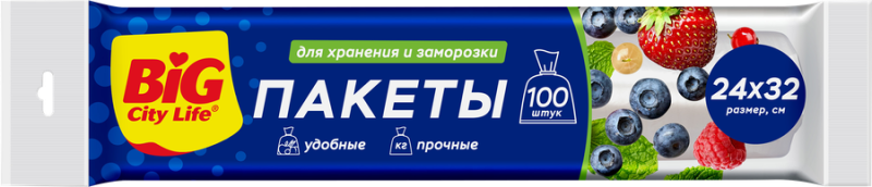 Пакеты для хранения от бренда BIG CITY LIFE – аксессуары, предназначенные для хранения и упаковки пищевых и непищевых продуктов. Формат 24х32 см универсален для бакалеи, хлебобулочных изделий и непищевых продуктов. Формат 100 шт подходит для активного ежедневного применения или тех, кто предпочитает экономить.