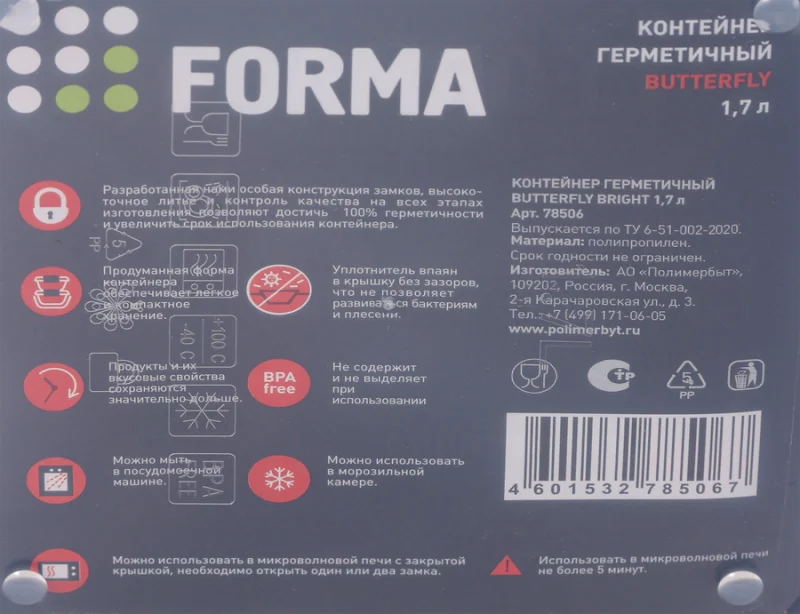 Контейнер ПОЛИМЕРБЫТ Butterfly bright 1.7л, герметичный Арт. 4378506