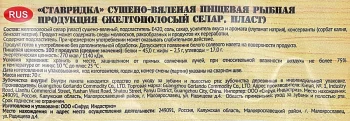Ставрида обыкновенная (пласт) сушено-вяленая, соль, консервант (сорбиновая кислота).