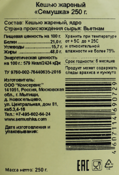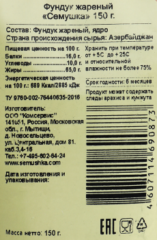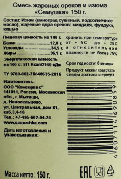 Смесь СЕМУШКА жареных орехов и изюма, 150г150 г399 ₽