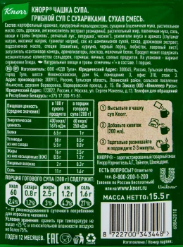 Суп KNORR Чашка супа Грибной суп с сухариками, 15,5гНовый16 г47,89 ₽